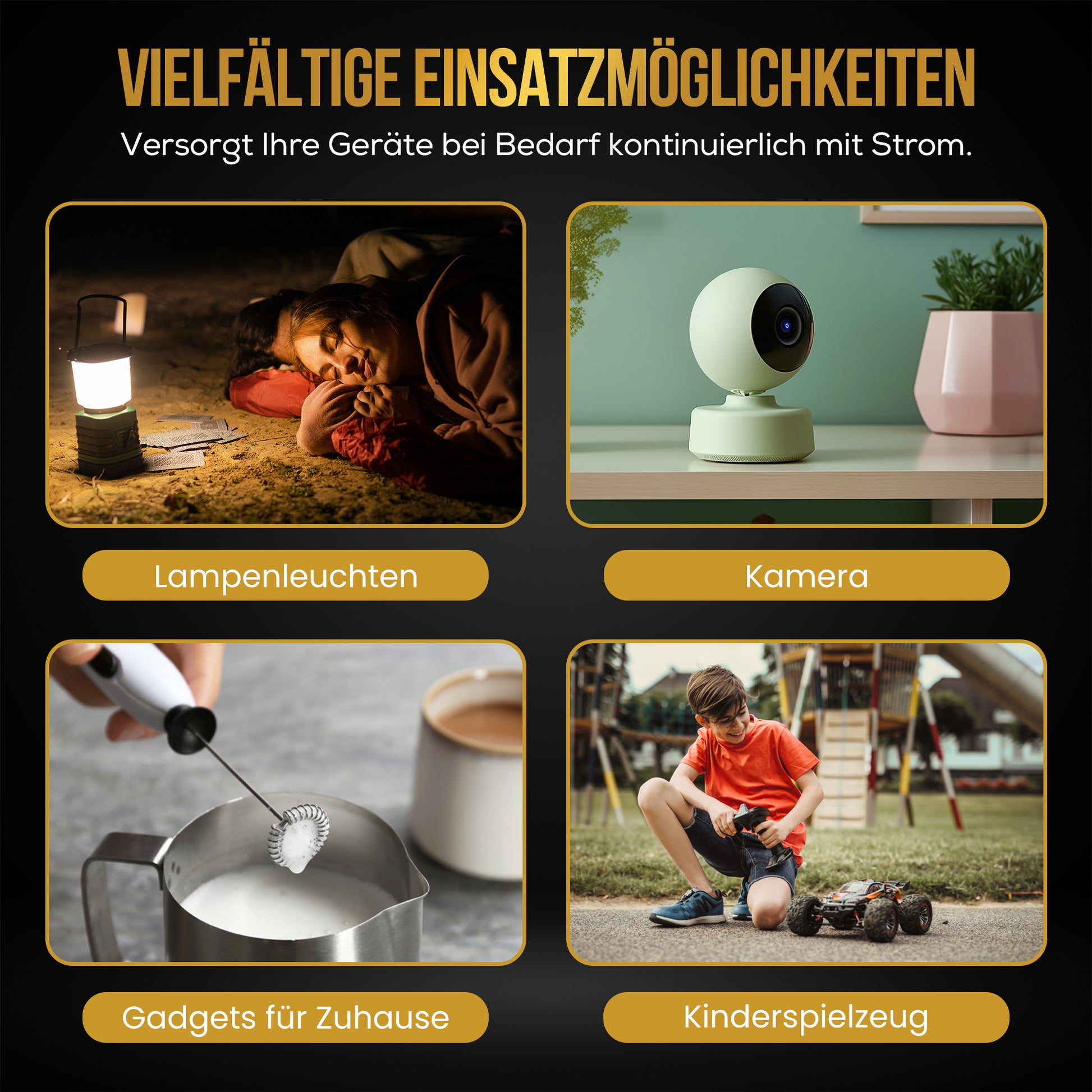 • Vielseitigkeit: Perfekt geeignet für zahlreiche Geräte wie E-Zigaretten, Taschenlampen, Fernbedienungen und Radios.