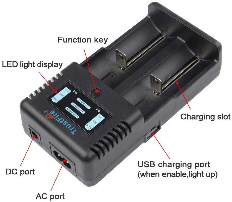 TrustFire TR-019 intelligentes 2-Slot Ladegerät für Lithium Akkus